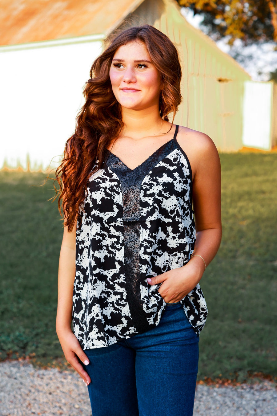 The 'City Slicker' tank is the perfect pick for any outfit. Dress it up with ease with the breezy fabric and v-neckline!